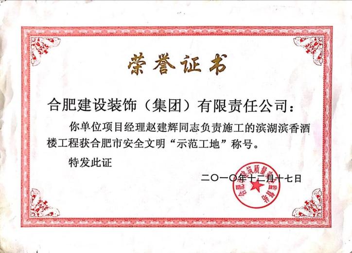 >2010年合肥市安全文明示范工地--濱湖濱香酒樓工程