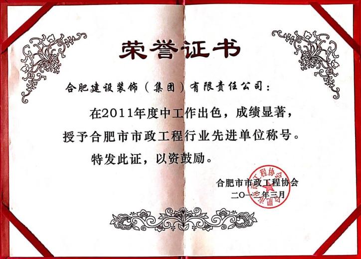 >2011年合肥市市政工程行業先進企業