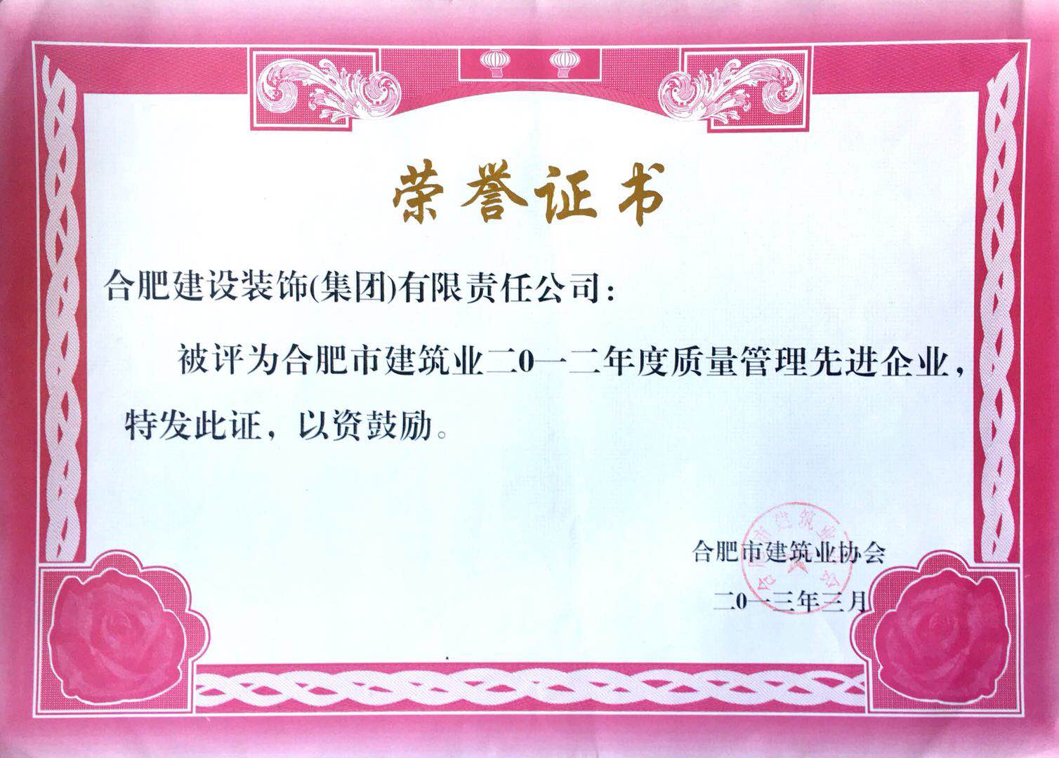 >2012年度質(zhì)量管理先進(jìn)企業(yè)