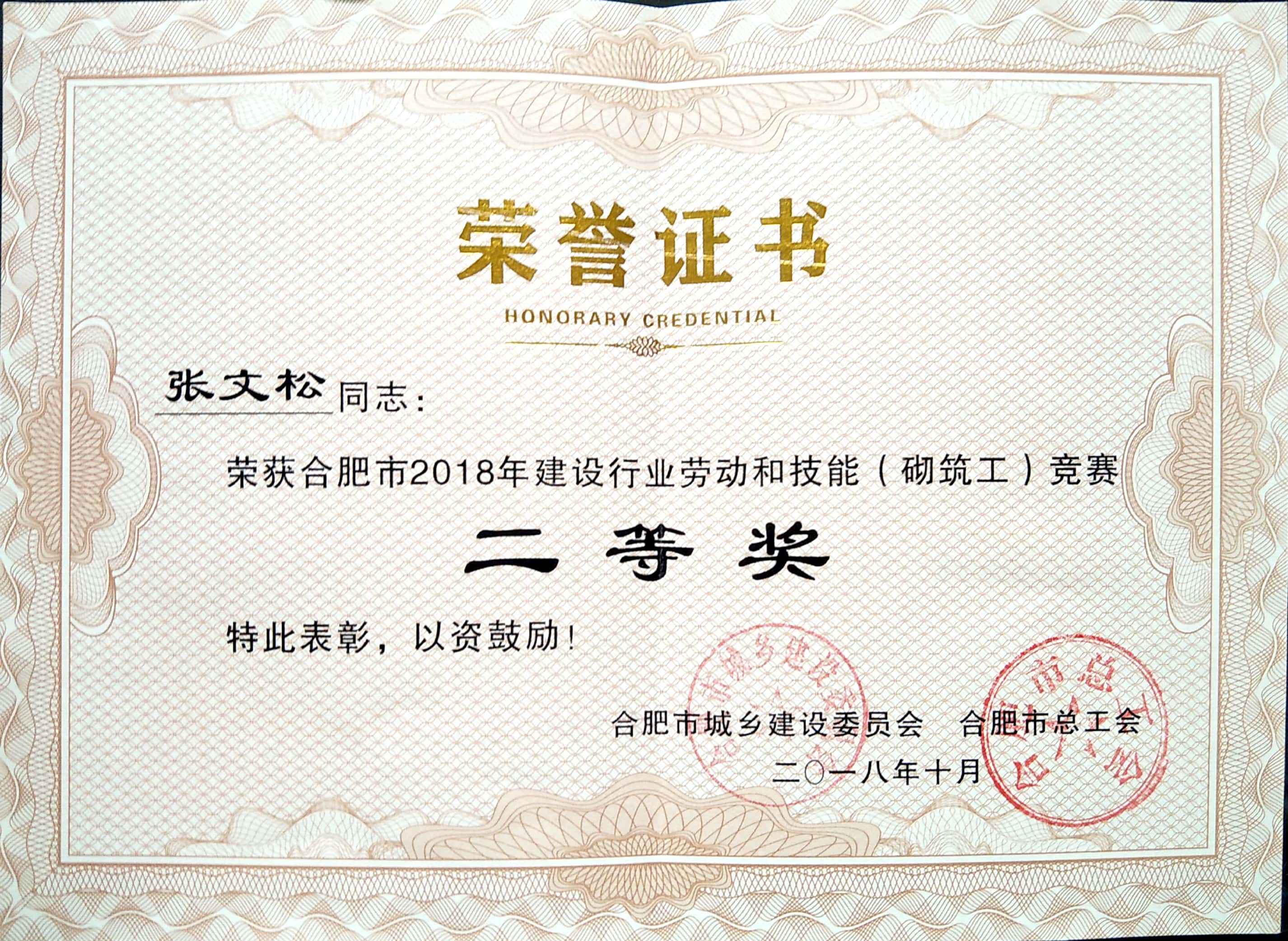 >2018年建設(shè)行業(yè)勞動與技能砌筑工--二等獎
