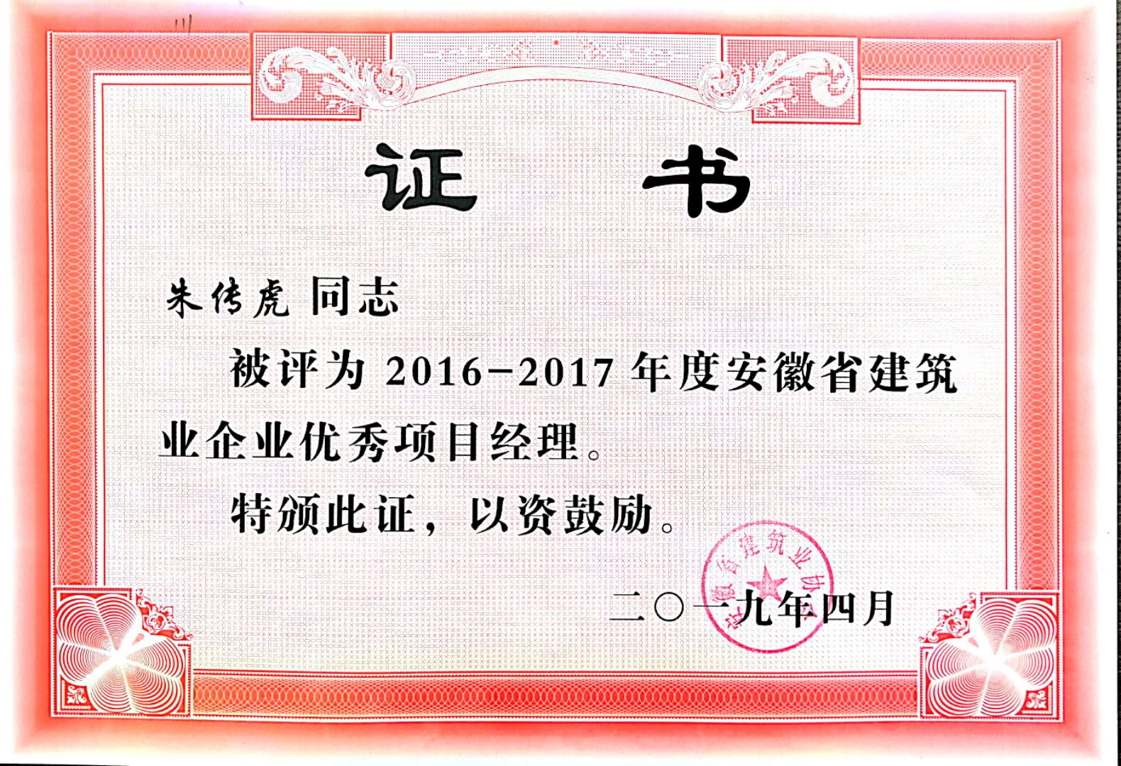 >2016-2017年安徽省建筑業優秀項目經理——朱傳虎