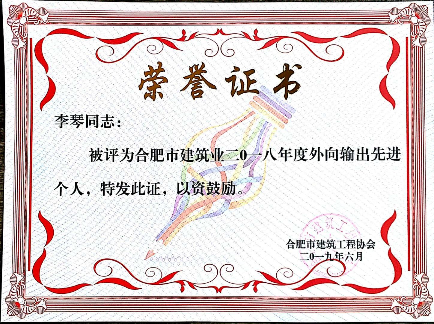 >李琴2018外向輸出先進個人