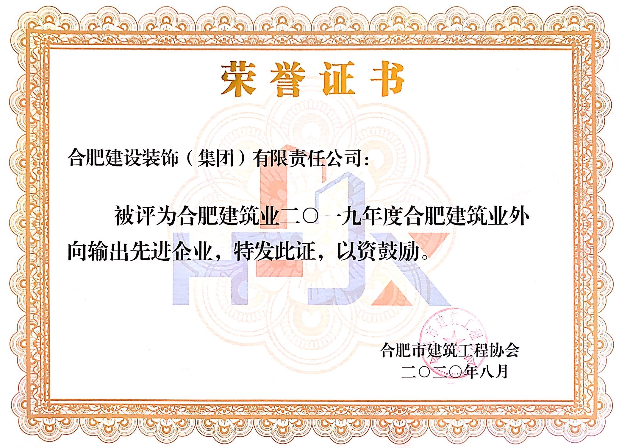 >2019年度合肥建筑業(yè)外向輸出先進(jìn)企業(yè)