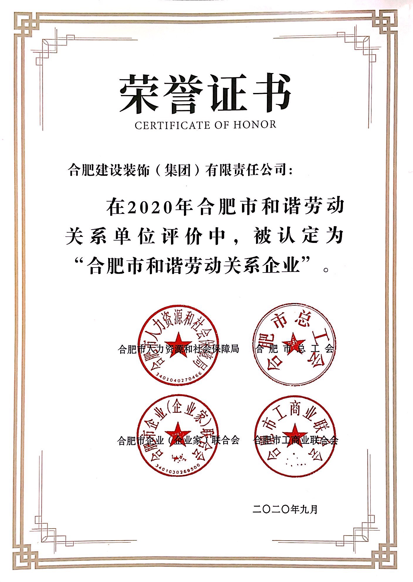 >2020年合肥市和諧勞動關(guān)系企業(yè)