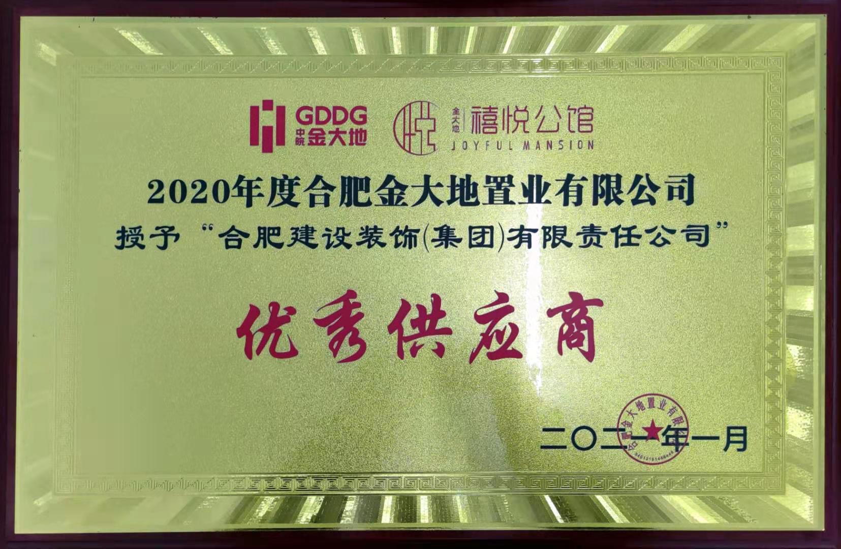 >合肥金大地置業有限公司2020年度“優秀供應商”獎牌