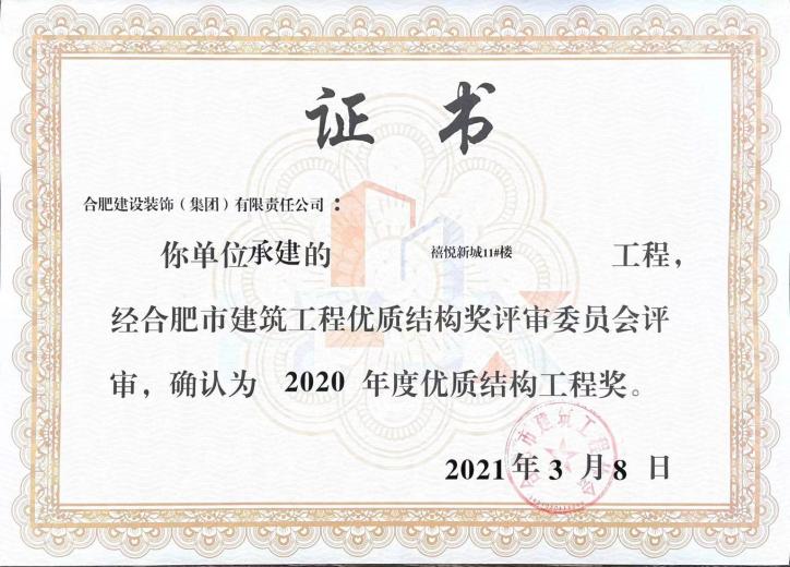>禧悅新城11#樓——2020年度合肥市建筑工程優(yōu)質(zhì)結構獎