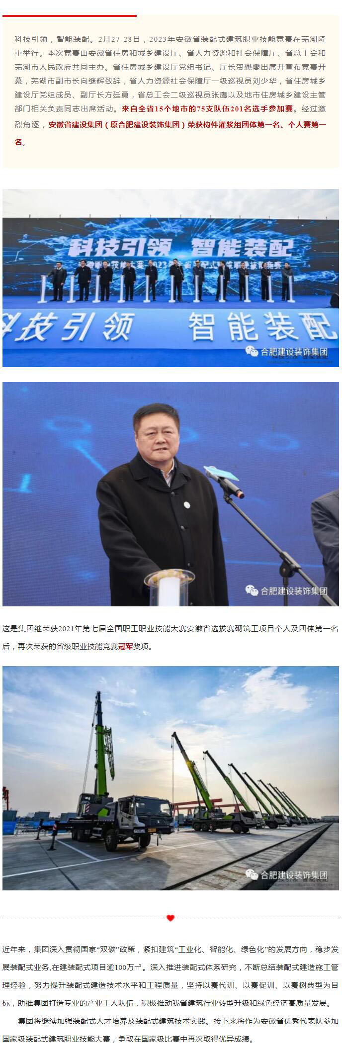 >喜訊 | 集團榮獲安徽省裝配式建筑職業技能競賽個人及團體二項冠軍