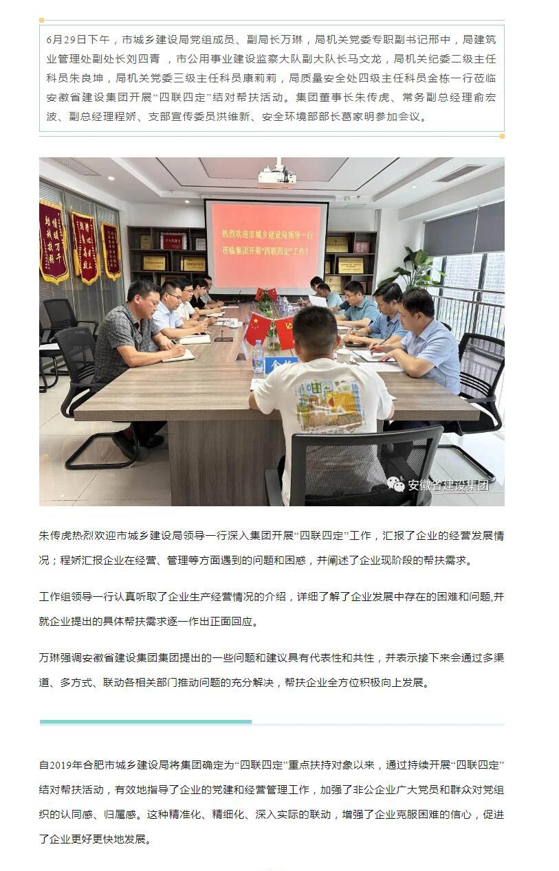 >市城鄉建設局領導一行到集團開展“四聯四定”結對共建活動