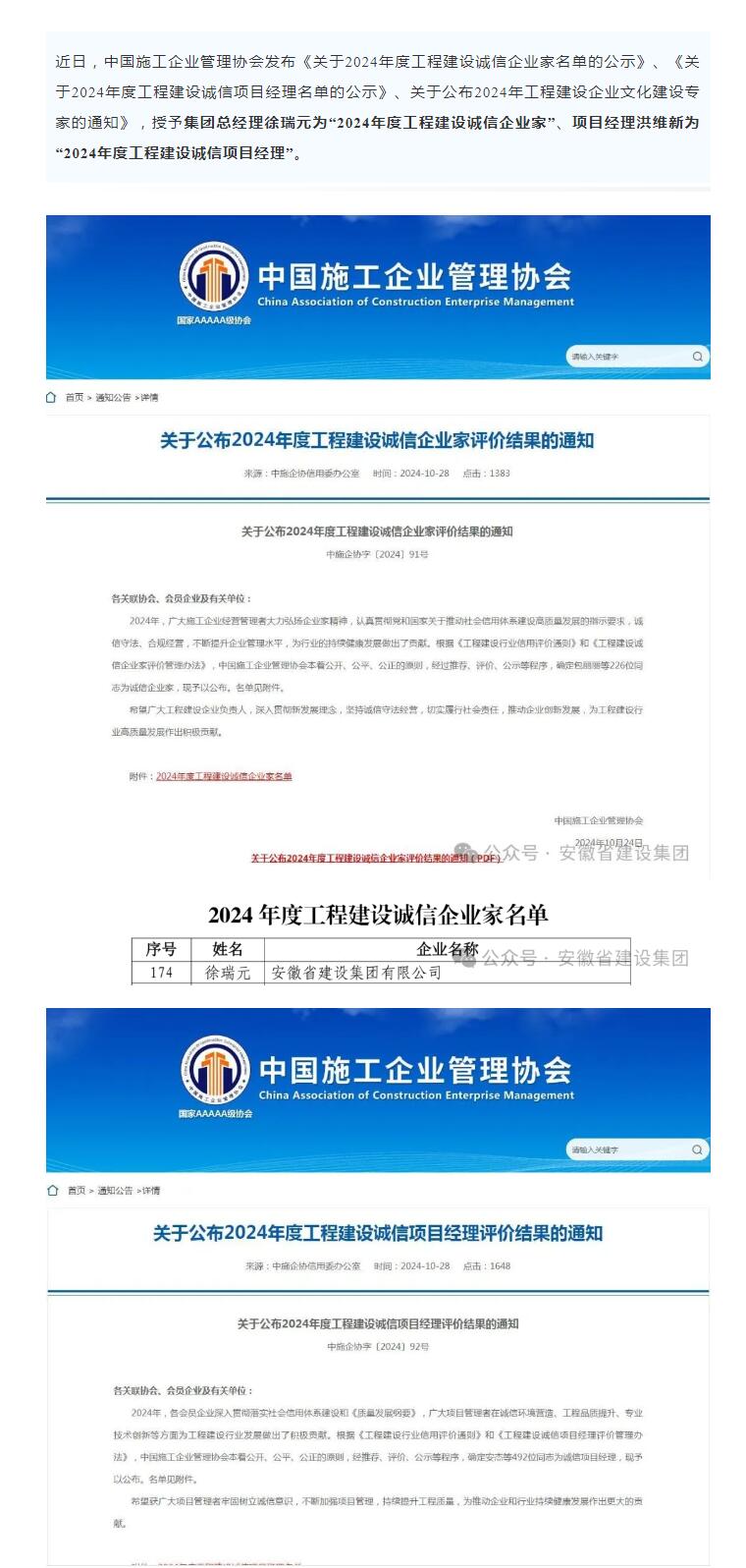 >集團(tuán)員工獲中國施工企業(yè)管理協(xié)會(huì)多項(xiàng)榮譽(yù)表彰